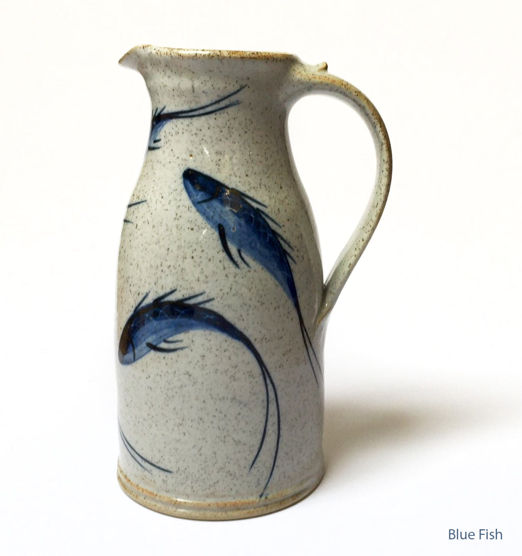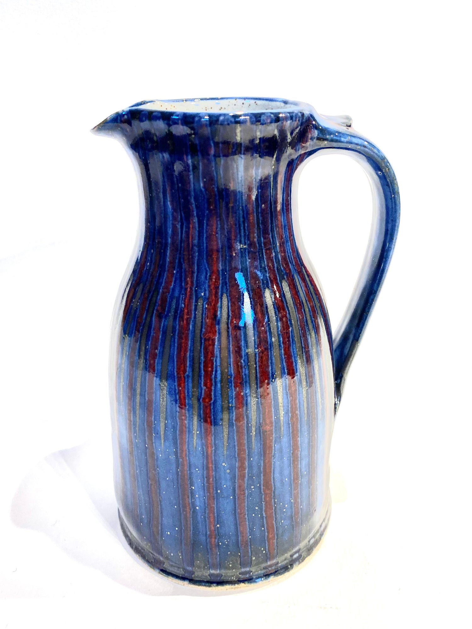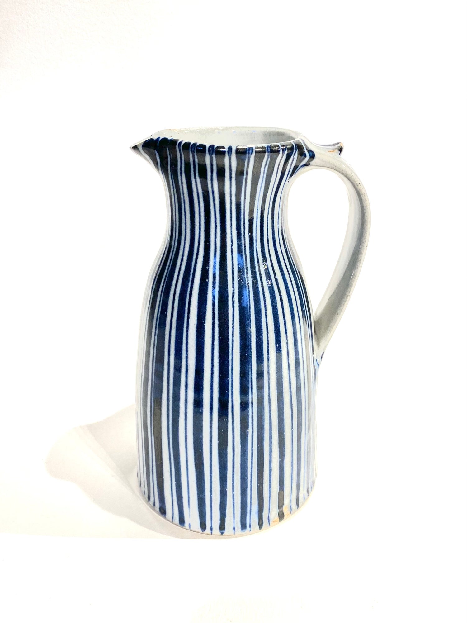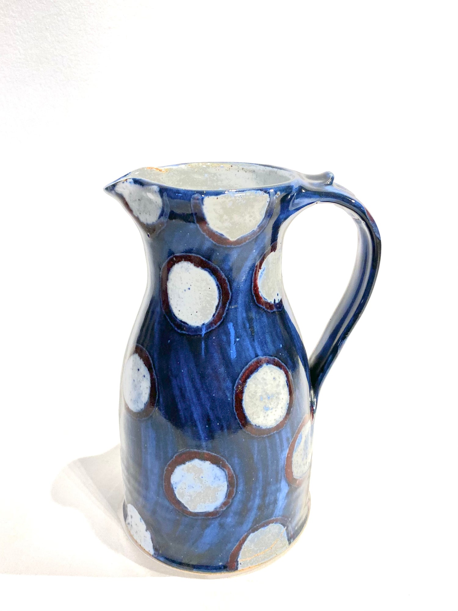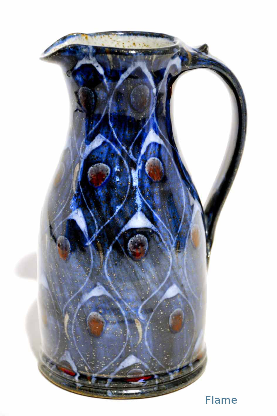 A beautiful hand thrown and decorated extra large narrow neck jug 23 cm. Microwave and Dishwasher safe.