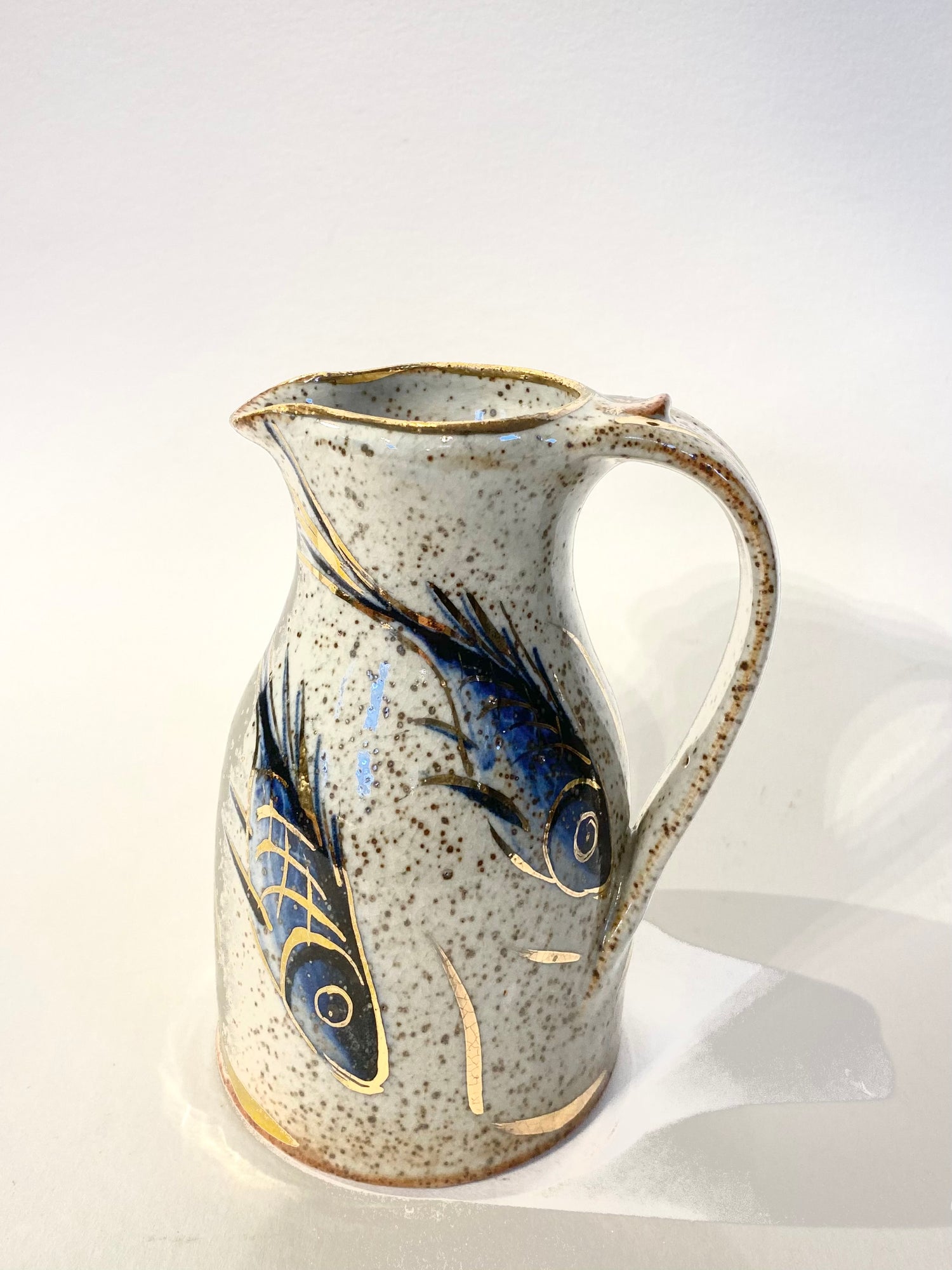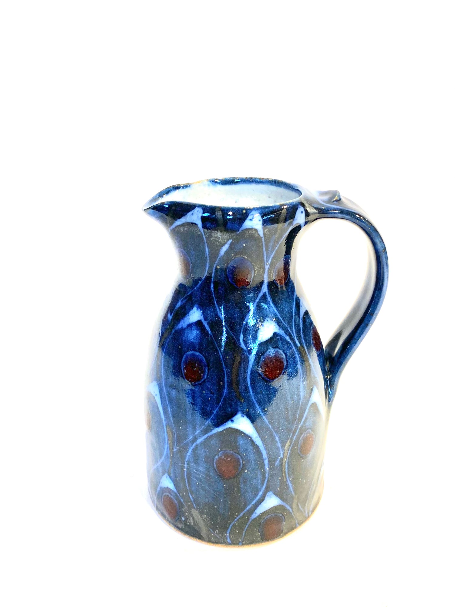 A beautiful hand thrown and decorated mini milk jug.