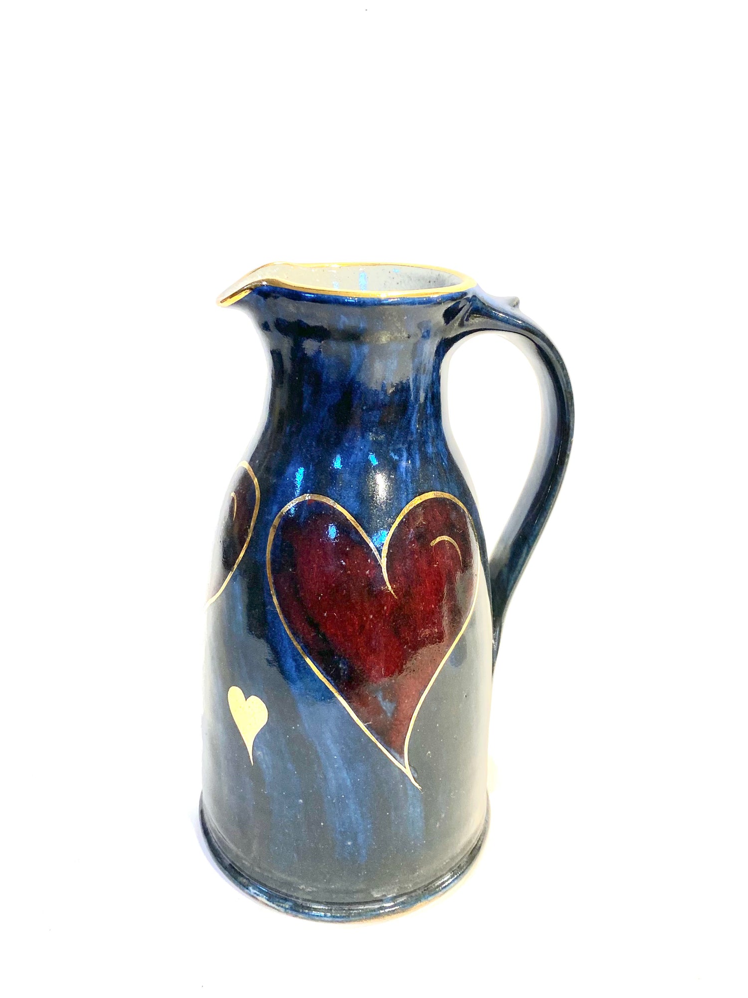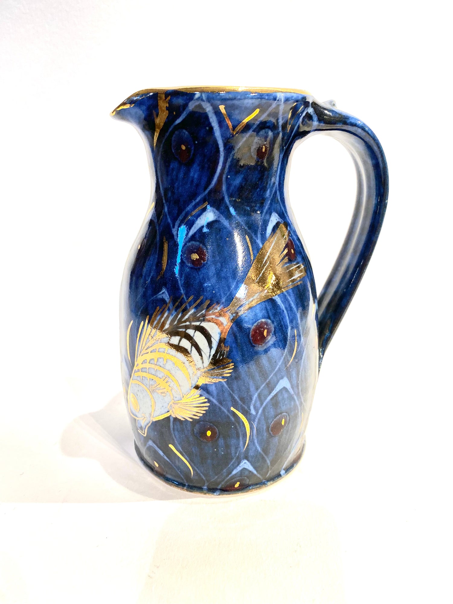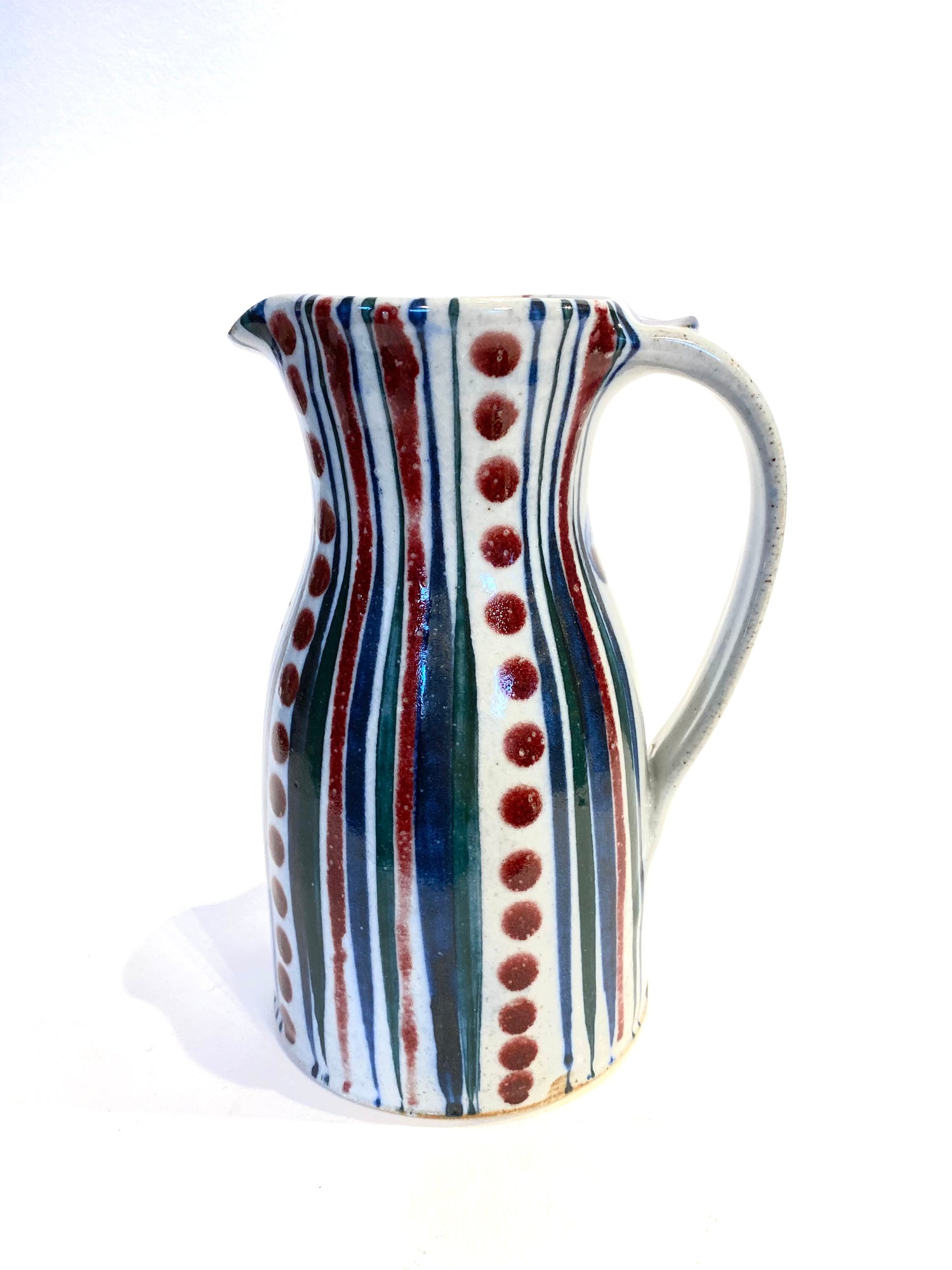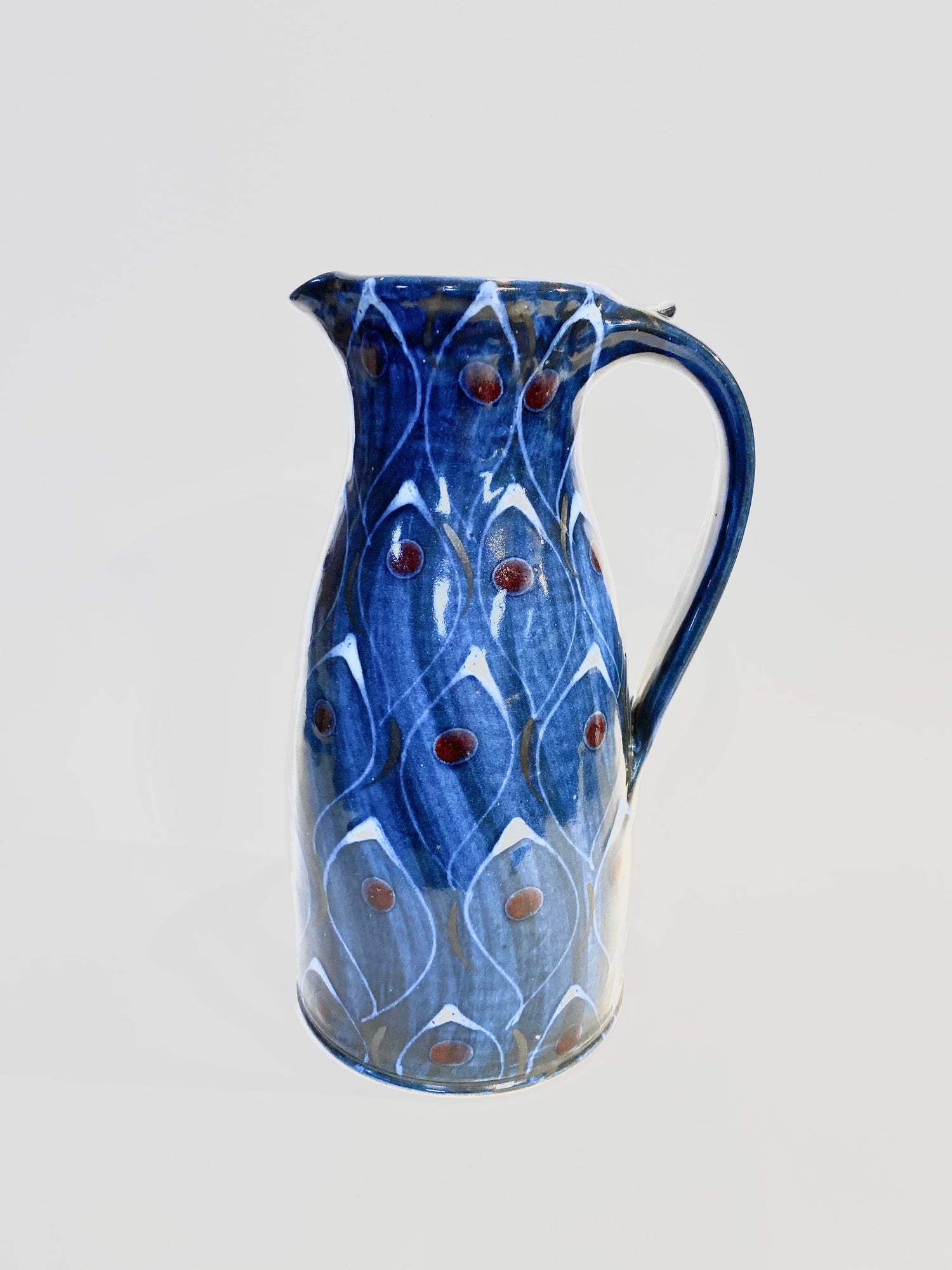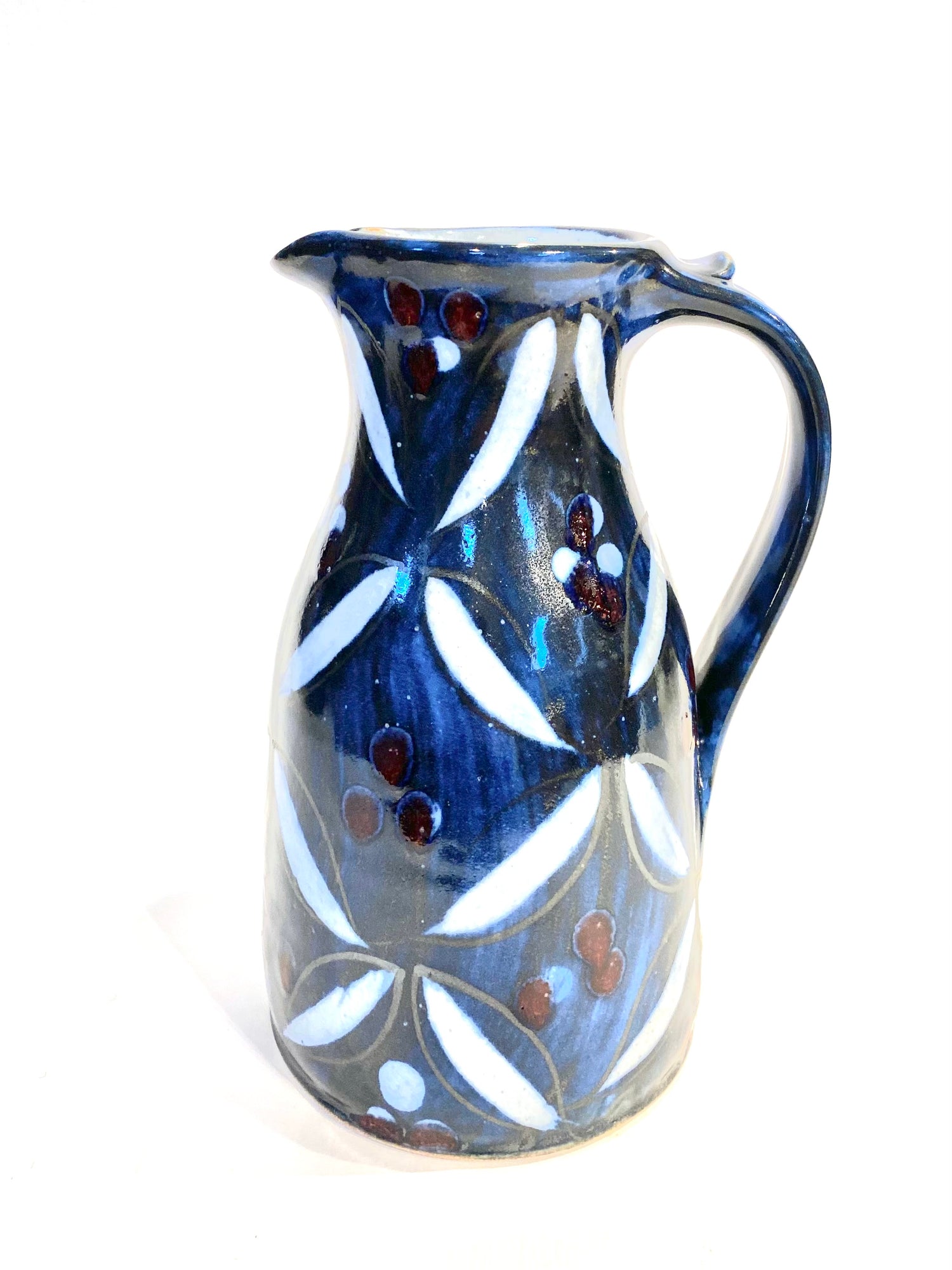 A beautiful hand thrown and decorated narrow neck jug 20cm.